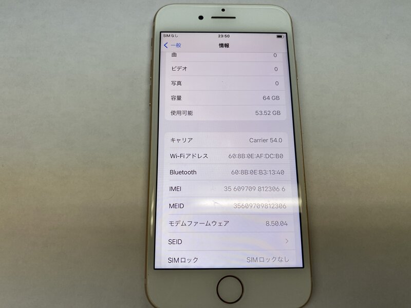 NW207 SIMフリー iPhone8 ゴールド 64GB
