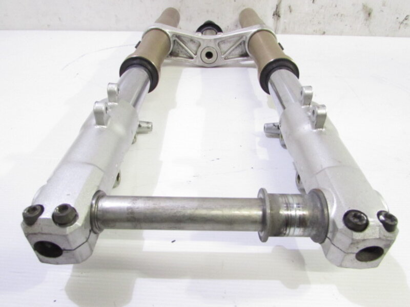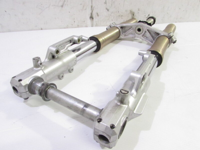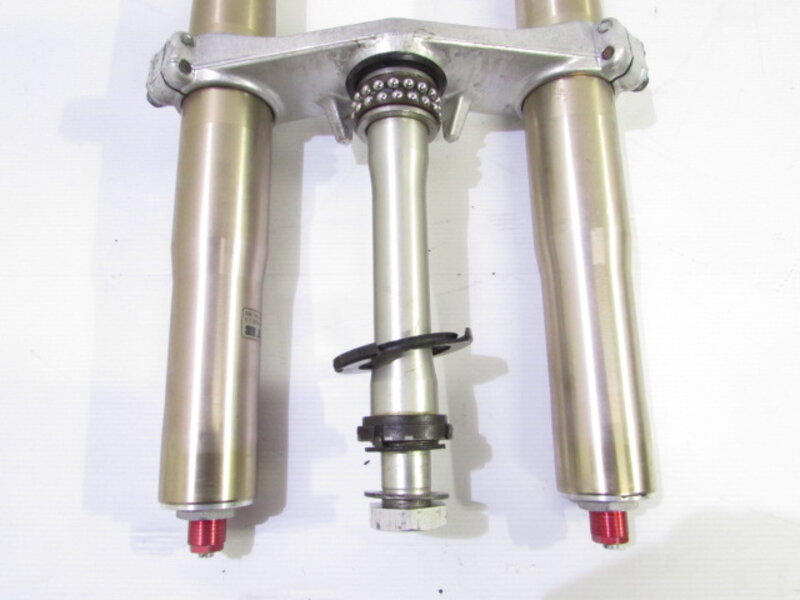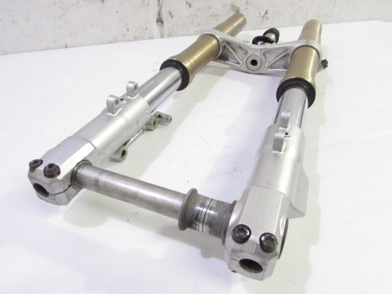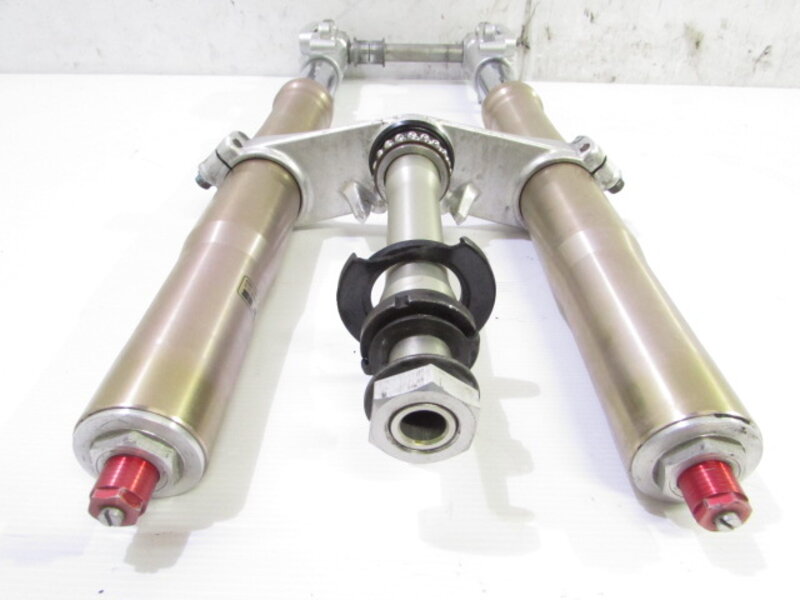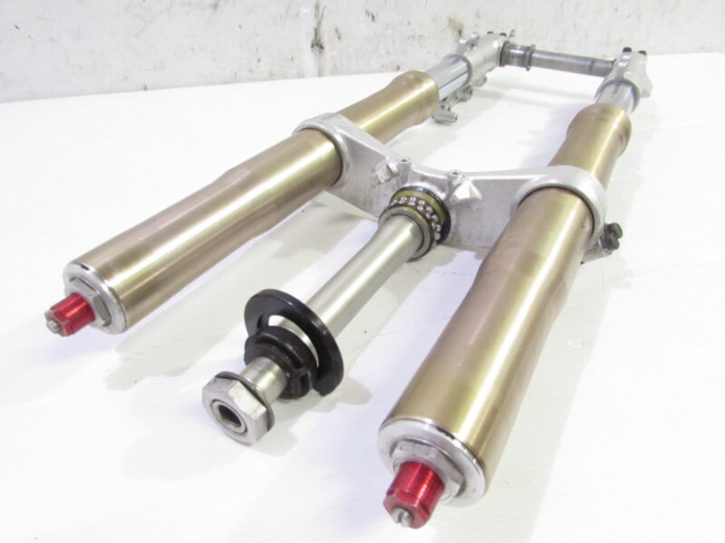 【足回り】 ☆フロントフォーク・・・イニシャルアジャスター付のフロントフォークになります! 目視で曲がりもなく、外観特に気になるような破損は御座いません!取り外し前に数回ボトムをさせてみましたが特に気になるようなOIL滲みは見られませんでした! ダストブーツにひび割れが出てきております! ☆スイングアーム・・・目視にて曲がりもなく、外観特に気になるような破損は御座いません!シャフトなどのSETとなります! ☆リアサスペンション・・・程度良好!! 大人気のグッベリーニ製フルアジャスターリアサスペンションになります! 目視で曲がりも無く、外観特に気になるような破損は御座いません! なかなか綺麗に保たれた状態の良い商品となります! バンプラバーが破れております! ☆ホイール・・・前後共に目視で曲がりもなく、スムーズに回転しておりました! ☆タイヤ・・・前後共に実働車より取り外しており、特に気になるような目立ったひび割れは見られず残り溝もシッカリと御座います!