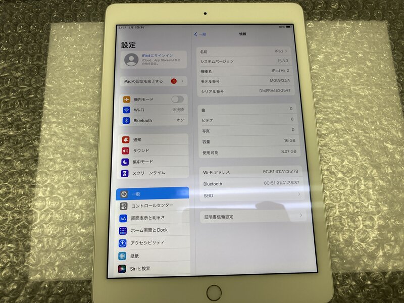 NW324 iPad Air 第2世代 Wi-Fiモデル A1566 シルバー 16GB