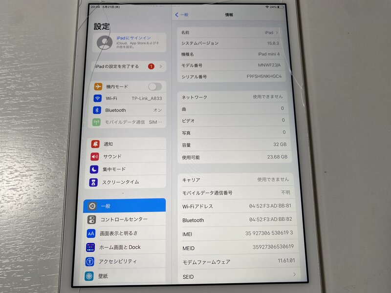アクティベーションロックOFF 画面割れ