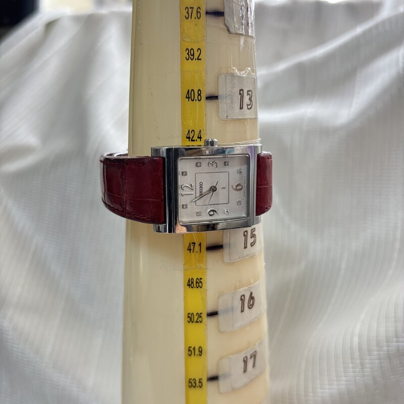 電池交換済 SEIKO LUKIA セイコー ルキア レディースクオーツ 腕時計 赤 レザー ベルト INO1-ODYO IW505CT01SKLK//