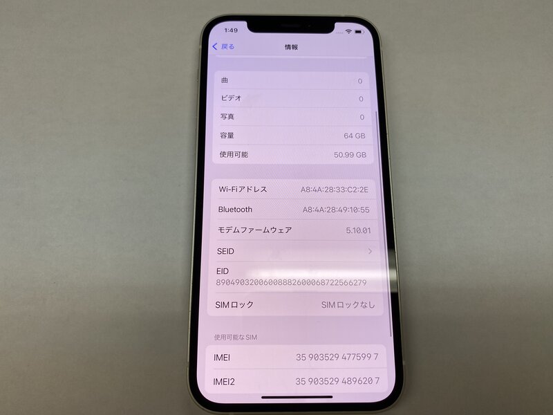 NX405 SIMフリー iPhone12 ホワイト 64GB