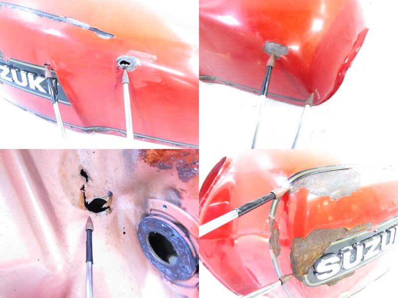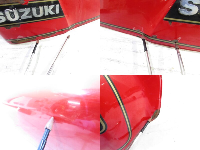 【外装】 ☆タンク・・・タンク内に錆がありいくつか穴あきが御座います! 大変希少なものとなりますので洗浄補修ベースにご活用ください! 一部凹みが御座います! ☆フロントカウル・・・程度良好!! 特に気になるような破損は御座いません! 年式を考えますと比較的状態よく保たれている商品となります! ☆Fフェンダー・・・特に気になるような破損は御座いません! 年式を考えますと比較的状態よく保たれている商品となります! ☆サイドカバー・・・程度良好!! 左右共に特に気になるような破損は御座いません! 一部傷や塗装剥げなど御座いますが、年式を考えますと比較的状態よく保たれている商品となります! ☆Rサイドモール・・・程度良好!! 左右共に特に気になるような破損は御座いません!年式を考えますと比較的状態よく保たれている商品となります! ☆テールカウル・・・程度良好!! 特に気になるような破損は御座いません! 一部小欠けが御座いますが、年式を考えますと比較的状態よく保たれている商品となります! ☆シート・・・レザー破れや補修箇所、ベースの錆腐食など御座いますので補修ベースにご活用ください! 大きな破損は御座いません!