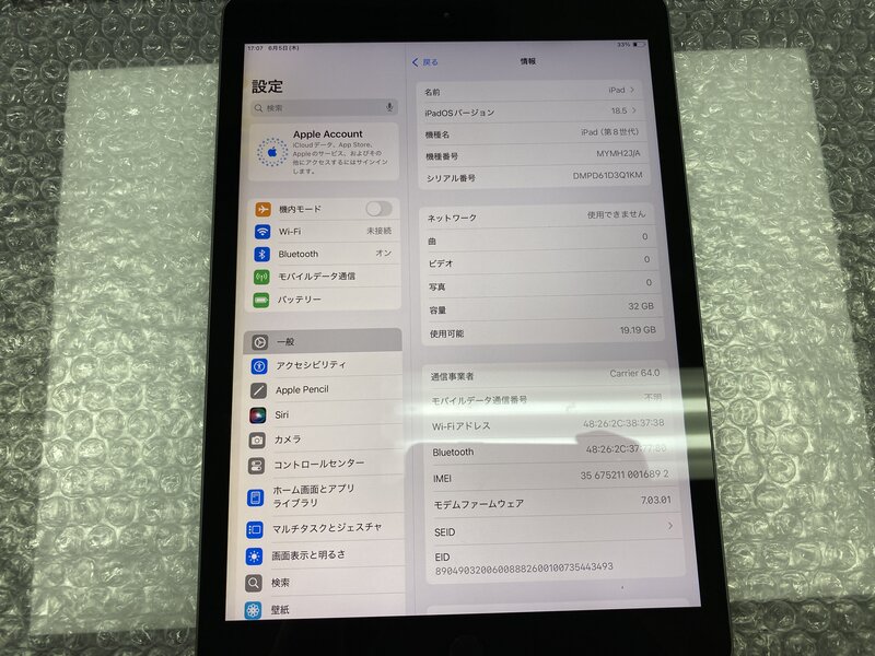 アクティベーションロック・・・OFF 充電端子の接触不良・液晶色ムラ