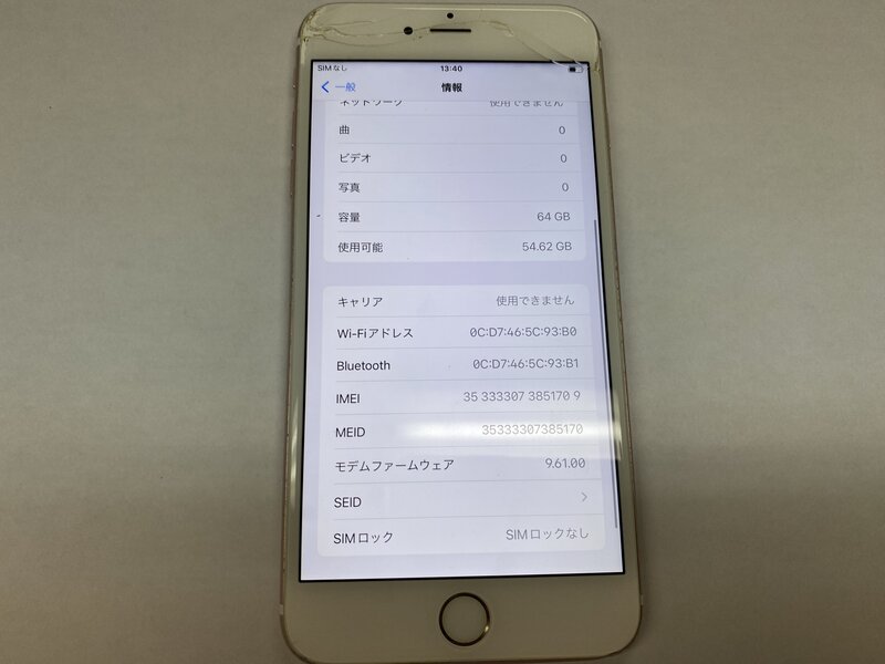 アクティベーションロック・・・OFF 画面割れ・アウトカメラレンズ割れ・インカメラ割れによる曇り・輝点