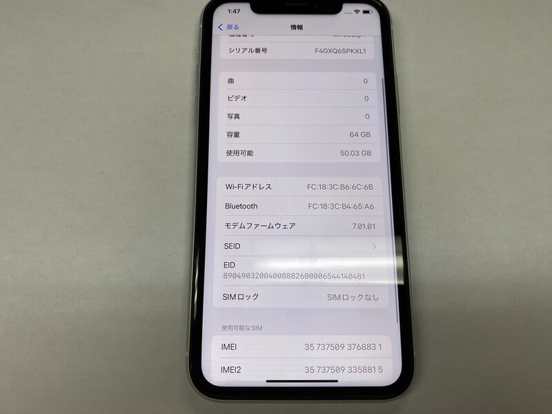 NY623 SIMフリー iPhoneXR ホワイト 64GB