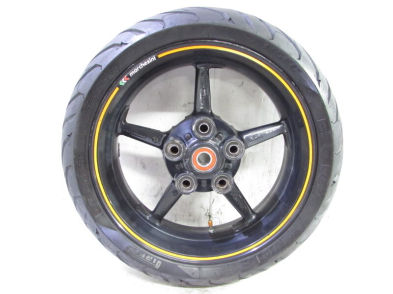 【足回り】 ☆フロントフォーク・・・程度良好!! WP製のイニシャルアジャスター付の倒立フロントフォークになります! 目視で曲がりもなく、外観特に気になるような破損は御座いません!取り外し前に数回ボトムをさせてみましたが特に気になるようなOIL滲みは見られませんでした! 状態の良い商品となります! ラジアルマウントとなっております! ☆スイングアーム・・・目視にて曲がりもなく、外観特に気になるような破損は御座いません!シャフトなどのSETとなります! ☆リアサスペンション・・・程度良好!! WP製のリアサスペンションになります! 目視で曲がりも無く、外観特に気になるような破損は御座いません! なかなか綺麗に保たれた程度の良い商品となります! ☆ホイール・・・ブレンボ(マルケジーニ)製のキャストホイールになります! 前後共に目視で曲がりもなく、スムーズに回転しておりました!
