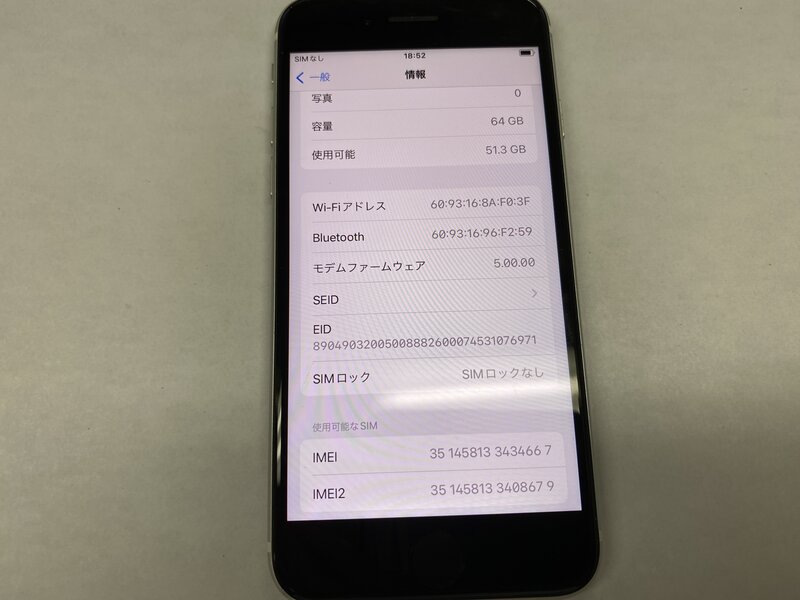 NZ096 SIMフリー iPhoneSE 第2世代 ホワイト 64GB
