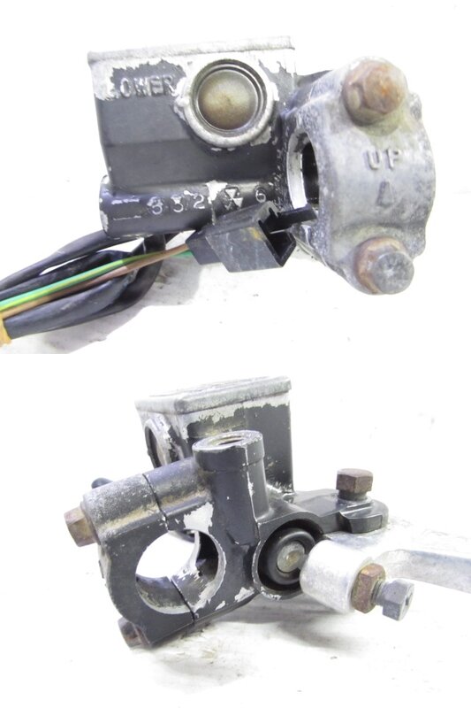 【商品に関してのお願い】※了承できない方は絶対に入札しないでください※ ■車両より取り外した中古部品となり経年や使用に伴う腐食・傷・錆・汚れ・補修跡などがある場合が御座いますので商品画像をよくご覧頂き商品状態の把握をされたうえ、御検討くださいますよう御願い致します。 ■特別に記載がない限り出品物は写真の物が全てとなります。使用にあたりたとえその他の部品が必要な場合でも商品画像に写っていなければ何も付属致しません。 ■固定部分の爪など新品時のすべて正常状態を把握できておりませんので破損に気が付かない場合が御座います。商品画像をご覧頂きご確認ご了承のうえご検討を御願い致します。 ■不動車よりパーツを取り外しておりますので電装系パーツなど一部を除き動作確認が出来ていない商品が御座いますので必ず御了承の上ご検討下さいますようお願い致します。 ■約32年前の大変古い車両よりパーツを取り外しておりますので動作確認済商品でありましても突然の故障や寿命または経年劣化により輸送中の軽衝等での破損が起きてしまう可能性が御座います。すべての商品一切の保障は出来かねますので必ず御了承の上ご検討下さいますようお願い致します。 ■配線の加工やちぎれ等がある場合が御座います!すべての正規状態を把握できておりませんので商品画像をよくご覧頂き必ず商品状態の把握を御願い致します。 ■入庫車両よりパーツを取り外しておりますので前オーナー様等によりパーツの加工などが施されている場合が御座います! すべての商品の正式な状態が把握できていない、また内部改造の場合は外観ではわかりませんのでそのような内容の見逃しや記載間違いが起こる可能性が御座います。ご了承、ご納得の上ご入札下さいますようお願いいたします。 ■タイヤ、スプロケット、電球(LED含む)、ブレーキパット、エレメント、各部ガスケットやシールパッキン、樹脂製パーツ、その他消耗パーツの劣化や消耗に関しましては全て交換前提でのご検討をよろしくお願い致します。各商品に消耗品が付属していなかった場合や劣化によるオイル漏れ、滲みなどがあった場合も交換前提の扱いとなりますのでクレームなどは一切対応いたしませんので必ずご了承の上でご入札下さいますようお願いいたします。 ■商品画像にてよくわからない箇所、見にくい箇所が御座いましたらご自身で判断せず必ずご連絡くださいますよう御願い致します。落札後に見えない部分に何らかの不具合があった場合も事前確認の無い場合一切のクレーム対応は致しませんので必ずご連絡および確認されますようお願いいたします。 ■動作確認済みの電装パーツ等がタイミング悪く到着時に内部破損(寿命等)等したりする可能性が万が一にも御座います!あくまで全て中古パーツとなり使用年月もわかりませんので各パーツの到着保証は一切出来ません。動作OKの記載はあくまで当社での確認時にての判断となり保障では御座いませんので必ずご了承の上ご入札下さいますようお願いいたします。 到着時に不具合があった場合などの返品交換などの対応は一切行いません。 ■エンジンの動作確認などはあくまで当社検査時の状態を記載しております。その時のセッティングやオイルの硬さにより調子の良し悪し、煙吐きの有無や大小、劣化による突然のシールガスケット類の不良によるオイル漏れや煙吐き、圧縮不良などが起きうる可能性が万が一にも御座います!検査はあくまでその時の状態ですので到着時の完動保証では御座いませんので一切の保証は出来かねます。中古パーツという事を必ずご理解ご了承の上ご検討くださいますようお願いいたします。 ■曲がりやサイズ、傷などの確認は専用測定器ではなく目視、または簡易測定器(メジャー・ノギス)にて行っておりますのでご了承のうえご検討くださいますよう御願い致します。到着時に万が一曲りが確認された場合も保証は出来かねます! ■メーターの動作確認済記載はスピード/タコの針、またはデジタル表示の動作確認となりますのでその他付属しているメーターや計りの確認は行っておりませんので必ずご了承の上ご検討くださいますようお願いいたします。時々動作確認済みメーターが到着時に不具合が起きるという事例が御座いますが動作の確認はあくまで検査時の表記となりますので到着保障は一切できません。 ■社外製パーツには他車種用の社外製パーツが混ざっている可能性も御座います。 その際加工や私製のステー等が必要になってくる場合が御座いますので社外製パーツの取り付けに関しましては必ずご自身の責任においてお願い致します。 ■タイトルに記載されている検索ワードは流用を保証するものでは御座いません。すべての商品の流用に関する保証や責任は一切受けかねますので必ずご自身の判断にてご入札下さいますようお願いいたします。 ■タイトルミス、画像ミス(タイトルと画像が違う)ま