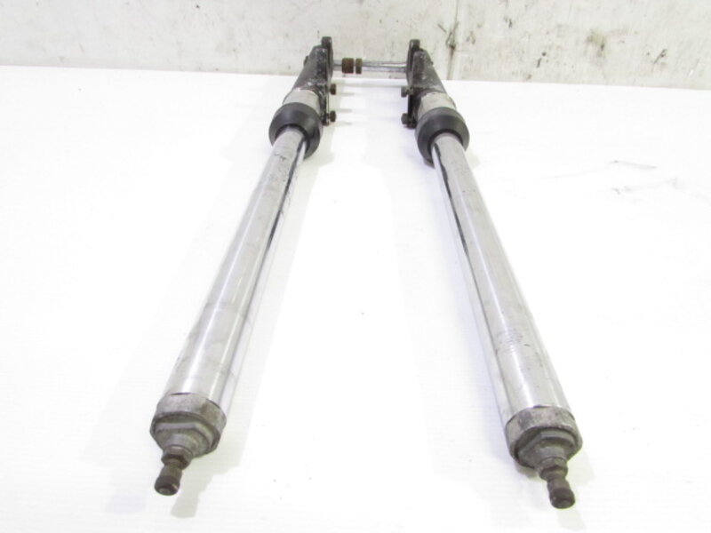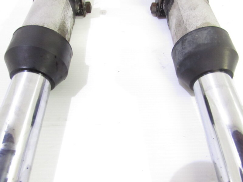 【足回り】 ☆フロントフォーク・・・目視で曲がりもなく、外観特に気になるような破損は御座いません!取り外し前に数回ボトムをさせてみましたところOIL滲みが見られました! ☆ステアリングダンパー・・・社外製(NHK??)のステアリングダンパーになります! 目視にて曲りは御座いません! 減衰調整確認してみましたが減衰の圧変確認できております! 数回ストロースさせてみましたところ少しオイルにじみが御座いました! ☆デフ/ドライブシャフト・・・目視にて曲りはなく、外観特に気になるような破損は御座いません!ディスクローター付きとなります! ☆スイングアーム・・・目視にて曲がりもなく、外観特に気になるような破損は御座いません!シャフトなどのSETとなります! ☆リアサスペンション・・・大人気のヨシムラ(KYB)製のリアサスペンションになります! 目視で曲がりも無く、外観特に気になるような破損は御座いません! ☆ホイール・・・前後共に目視で曲がりもなく、スムーズに回転しておりました! フロントのサイズ刻印御座いますがよく読み取れません! 【その他】