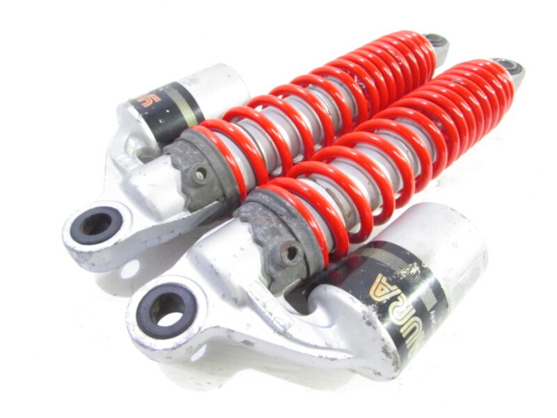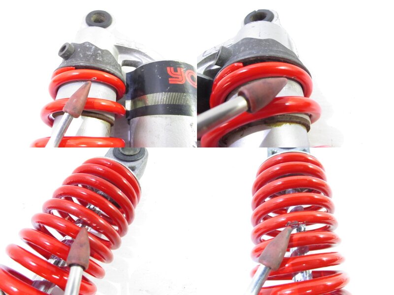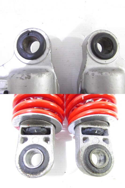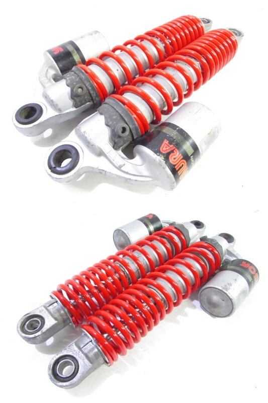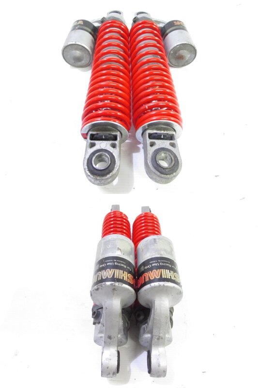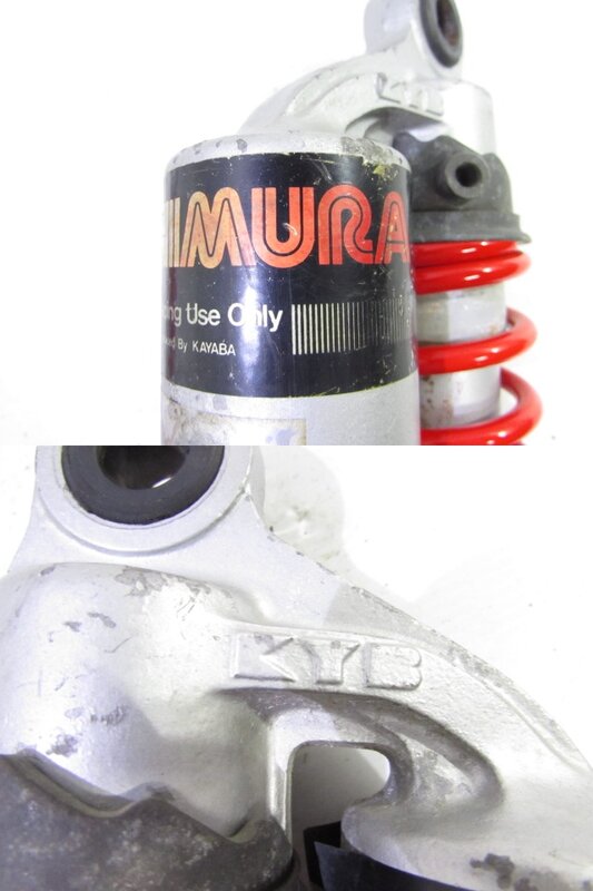 【足回り】 ☆フロントフォーク・・・目視で曲がりもなく、外観特に気になるような破損は御座いません!取り外し前に数回ボトムをさせてみましたところOIL滲みが見られました! ☆ステアリングダンパー・・・社外製(NHK??)のステアリングダンパーになります! 目視にて曲りは御座いません! 減衰調整確認してみましたが減衰の圧変確認できております! 数回ストロースさせてみましたところ少しオイルにじみが御座いました! ☆デフ/ドライブシャフト・・・目視にて曲りはなく、外観特に気になるような破損は御座いません!ディスクローター付きとなります! ☆スイングアーム・・・目視にて曲がりもなく、外観特に気になるような破損は御座いません!シャフトなどのSETとなります! ☆リアサスペンション・・・大人気のヨシムラ(KYB)製のリアサスペンションになります! 目視で曲がりも無く、外観特に気になるような破損は御座いません! ☆ホイール・・・前後共に目視で曲がりもなく、スムーズに回転しておりました! フロントのサイズ刻印御座いますがよく読み取れません! 【その他】