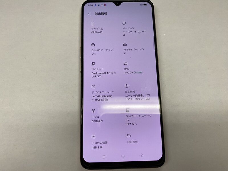 EC494 SIMフリー 楽天モバイル OPPO A73 CPH2099