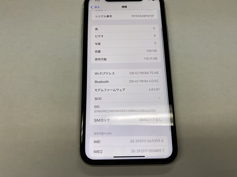 ED047 SIMフリー iPhone11 ホワイト 128GB