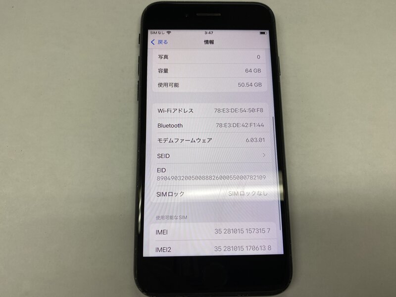 アクティベーションロック・・・OFF 充電端子不可(ワイヤレス充電可)