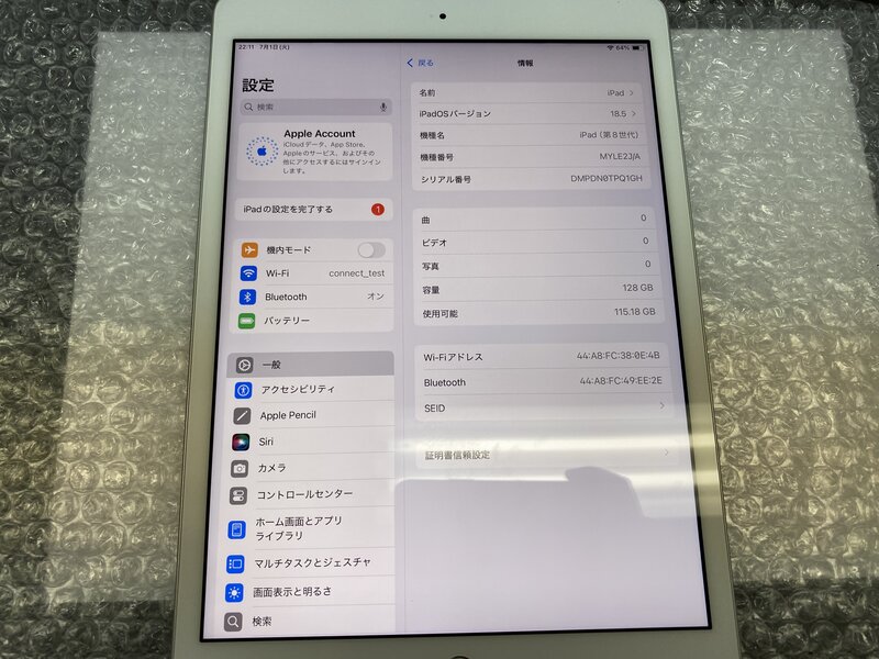 アクティベーションロック・・・OFF 充電端子の接触不良