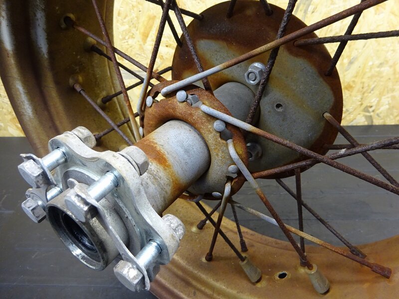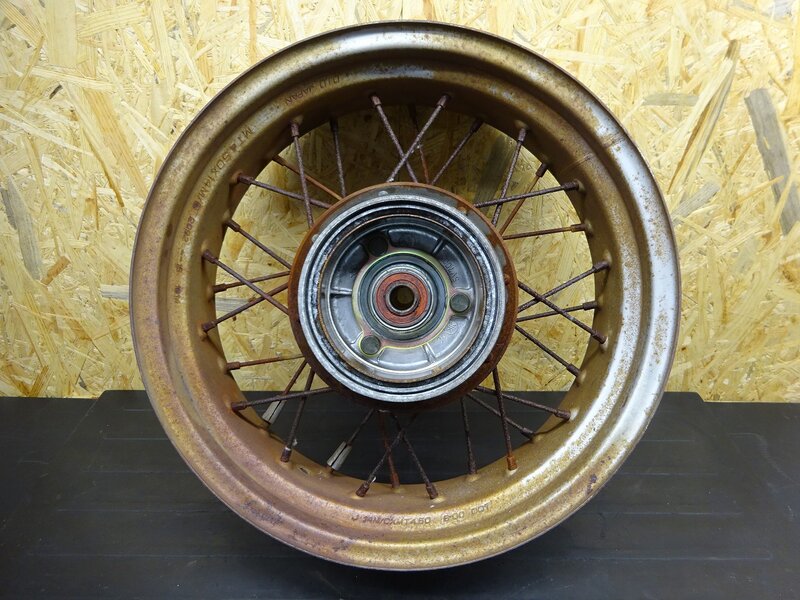 【250703】TW200(DG07J-009)◆ リアホイール 14×4.50 ドラムパネル フレ/錆有 ジャンク 【2JL TW225 DG09J