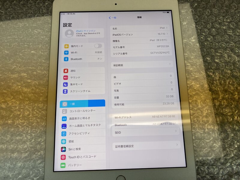 アクティベーションロック・・・OFF 表示不良