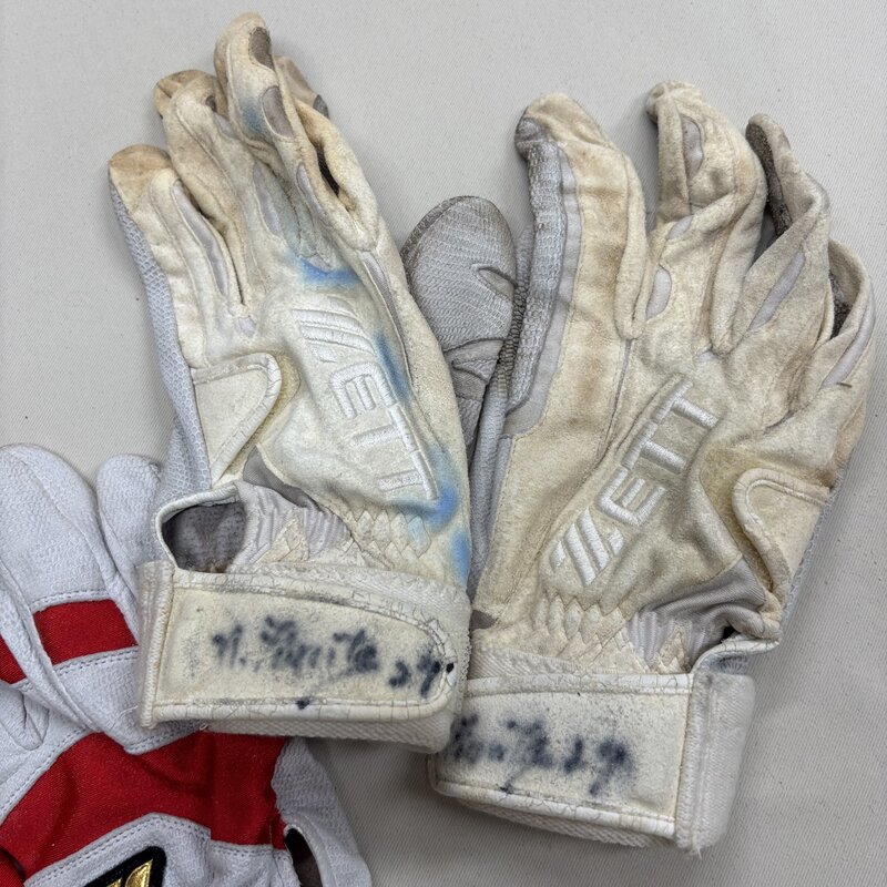1円~ 野球コレクター必見 ヤクルトスワローズ 古田敦也 27 ネーム入り バッティンググローブ 手袋 ZETT 2セット IW507AZ_BBL_OTH08BTGLV//