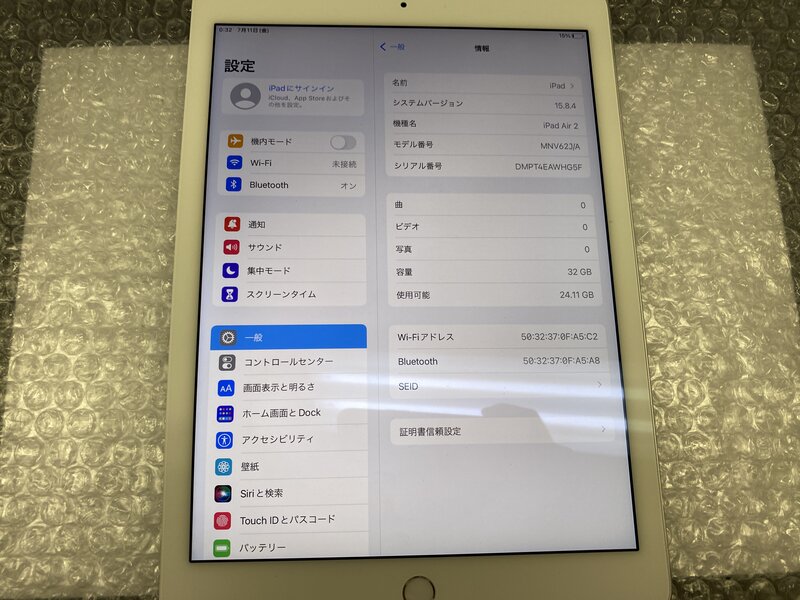 アクティベーションロック・・・OFF 画面浮き・バッテリー膨張