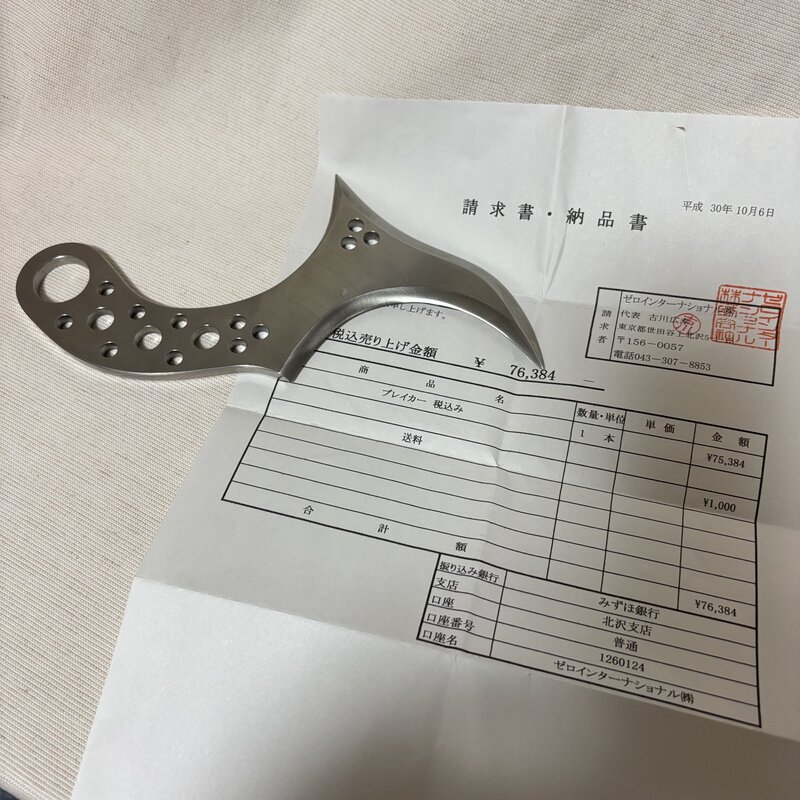 激レア カランビットナイフ ZERO RANGE COMBAT ブレイカー ゼロレンジコンバット 零距離戦闘術 映画 REBORN 使用品 リボーン IW507BK06ZRC