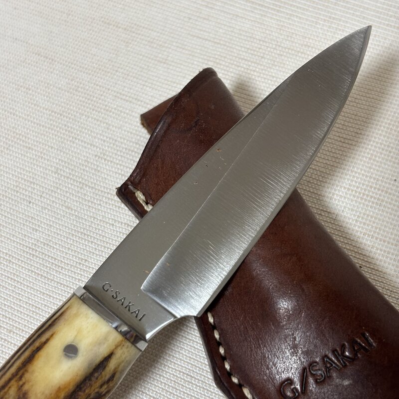 良品 ガーバー サカイ Gサカイ G.SAKAI スタッグ 片刃 シースナイフ レザーシース 鹿角 IW507BK05GSK