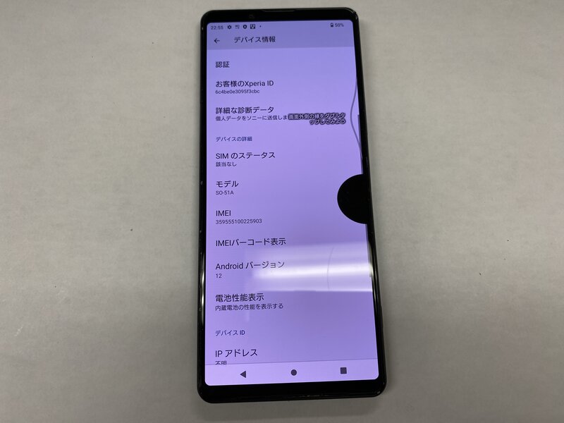 背面割れ・表示不良・本体歪み・アウトカメラレンズ割れ・SIMトレイなし