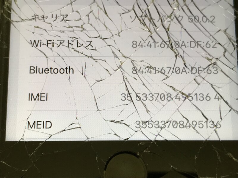 アクティベーションロック解除済み 画面割れ、両カメラ割れ(映り曇り)、バッテリー膨張、ホームボタン反応悪い バッテリー最大容量:59%