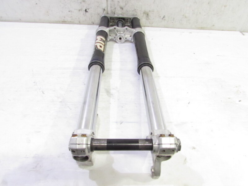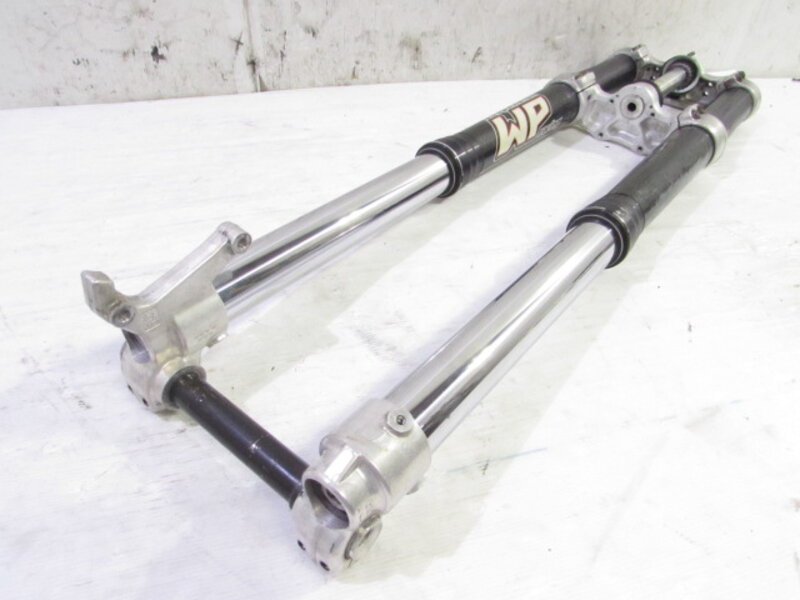 ☆フロントフォーク・・・程度良好!! WP製のイニシャルアジャスター付倒立フロントフォークになります! 目視で曲がりもなく、外観特に気になるような破損は御座いません!取り外し前に数回ボトムをさせてみましたが特に気になるようなOIL滲みは見られませんでした! 比較的状態の良い商品となります! ダストブーツにひび割れが出てきております!