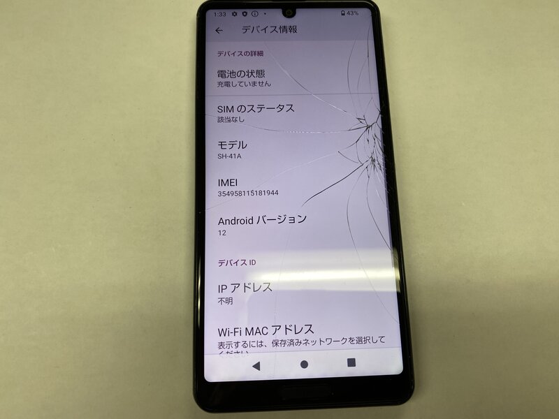 画面割れ・SIMトレイなし