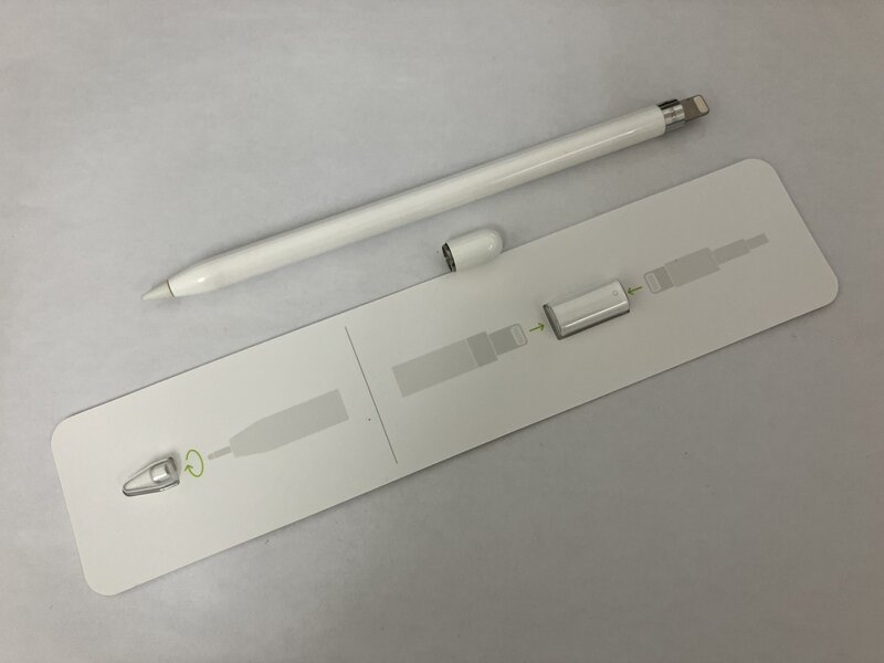 使用不可・一時的なペアリング可能だがすぐ切れる・充電不可・箱/充電アダプタ/予備のチップ付き