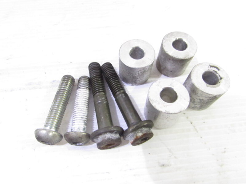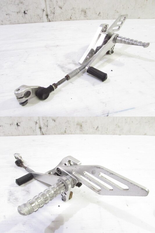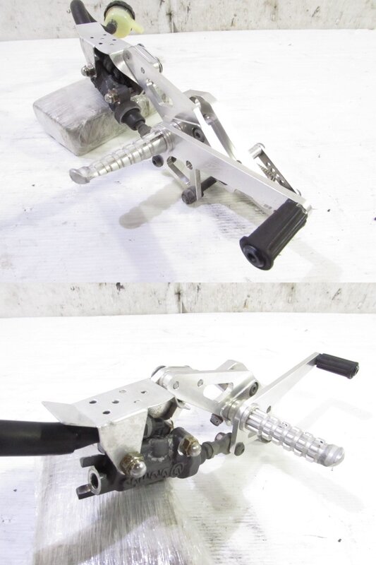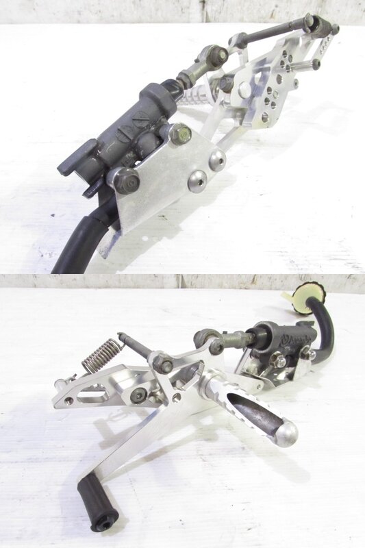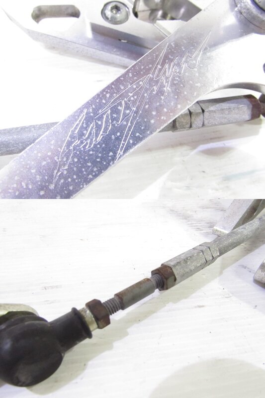 【足回り】 ☆フロントフォーク・・・目視で曲がりもなく、外観特に気になるような破損は御座いません!取り外し前に数回ボトムをさせてみましたところOIL滲みが見られました! ダストブーツにひび割れが出てきております! ☆ステアリングダンパー・・・ハイパープロ製アジャスター付ステアリングダンパーになります!目視にて曲りは御座いません!数回ストロークされてみましたが特に気になるようなOIL滲みは見られませんでした! 減衰確認済となり減衰を調節しながら確認しましたが最少と最大では圧の差を感じますが途中はあまり感じなかったので一度OH等されてからご使用される方が良いかもしれません! 知識不足となり詳しくは不明となります! ☆スイングアーム・・・目視にて曲がりもなく、外観特に気になるような破損は御座いません!シャフトなどのSETとなります! ☆リアサスペンション・・・程度良好!! オーリンズ製のフルアジャスターリアサスペンションになります! 目視で曲がりも無く、外観特に気になるような破損は御座いません! なかなか綺麗に保たれている比較的状態の良い商品となります! ☆ホイール・・・前後共に目視で曲がりもなく、スムーズに回転しておりました! ☆タイヤ・・・前後共に実働車より取り外しており、特に気になるような目立ったひび割れは見られず残り溝もまだ御座います!
