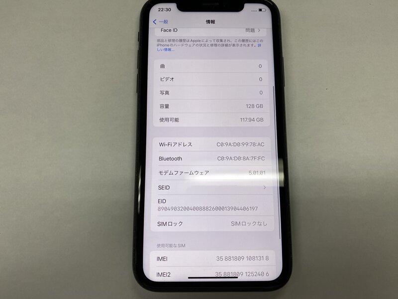 アクティベーションロック・・・OFF アウトカメラ不可・FaceID不可