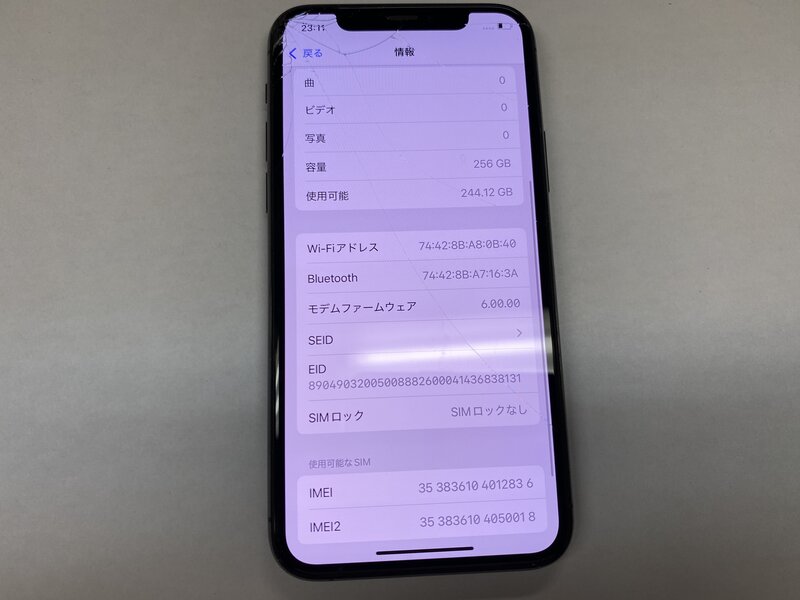 アクティベーションロック・・・OFF 画面割れ・アウトカメラ不良(0.5倍と2.0倍レンズ切り替え不可)・FaceID不可・TrueTone不可