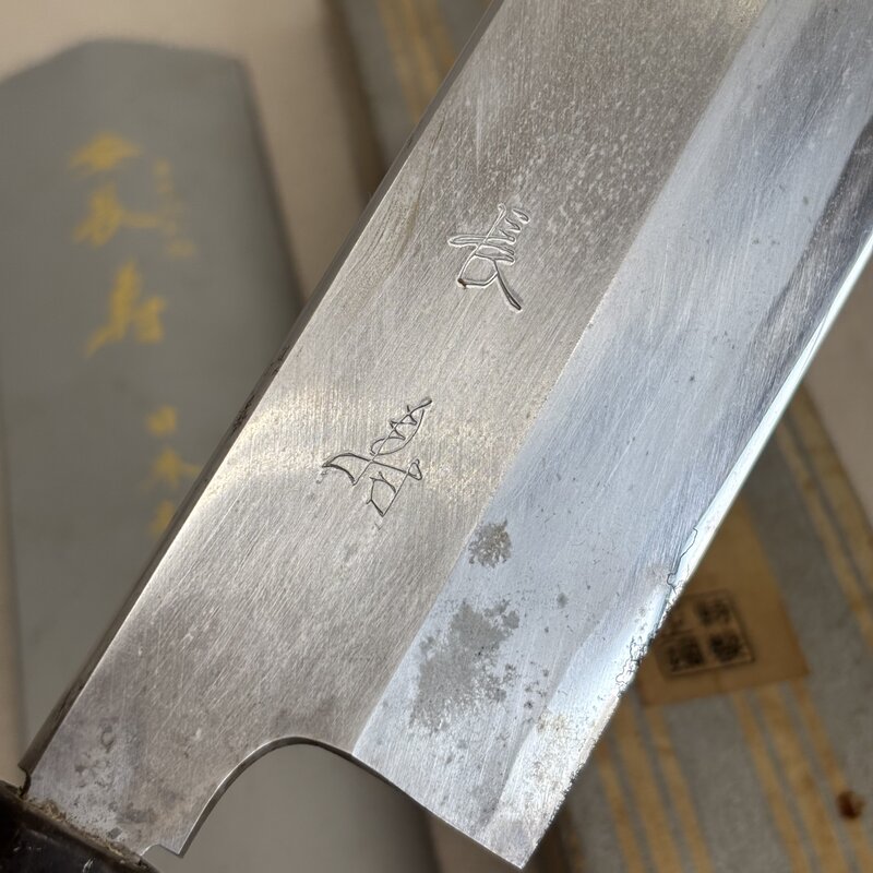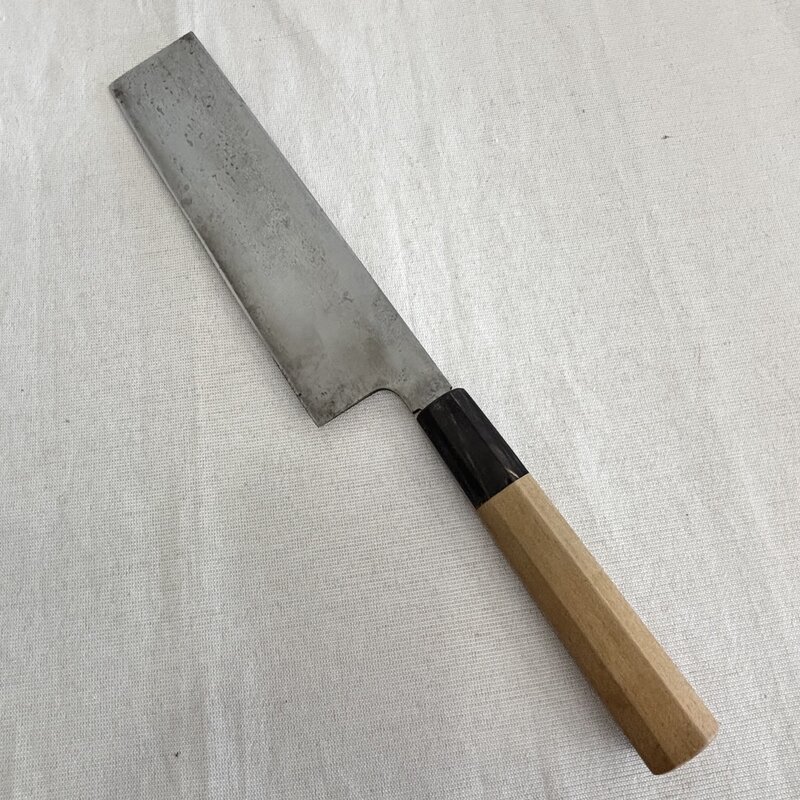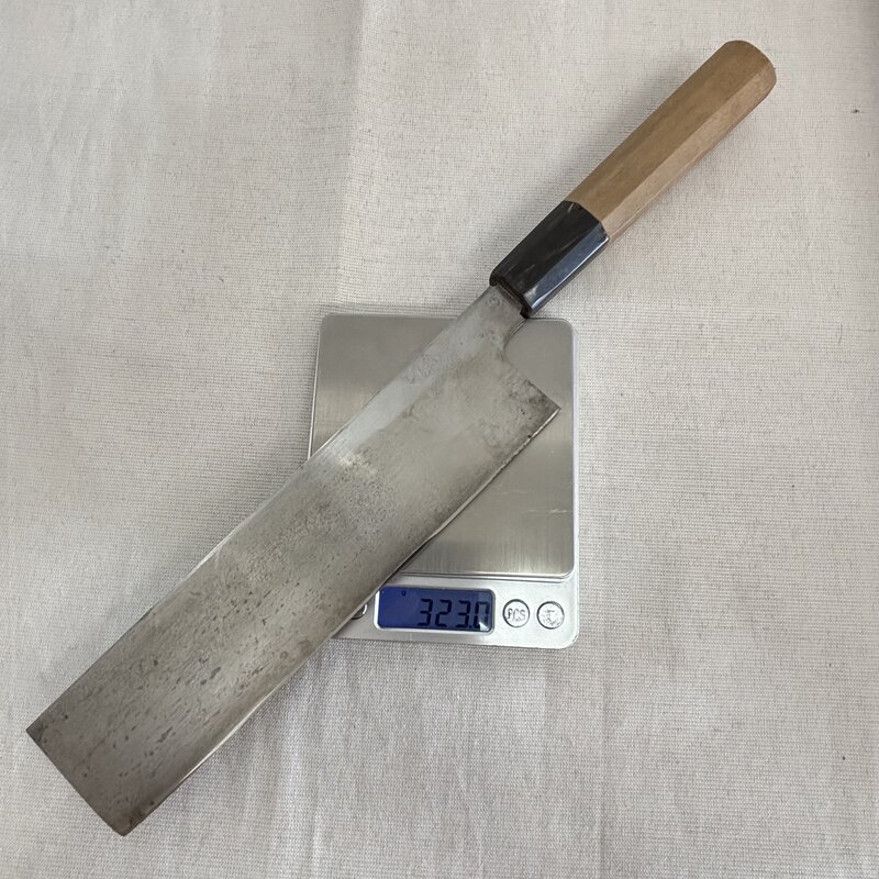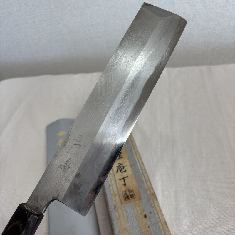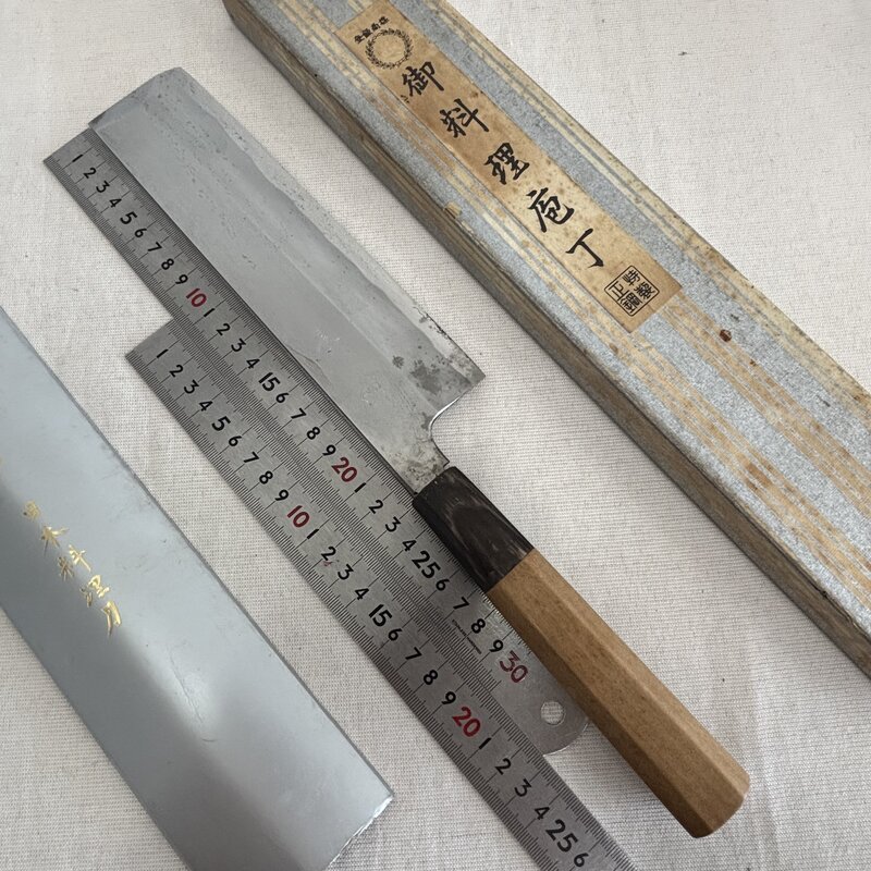 1円~ 長寿 本霞 日本料理刀 特製 正鋼 出雲純和鋼 菜切 和包丁 薄刃 料理人 プロ 職人 大型 全長38cm IW508AK26CHJ60