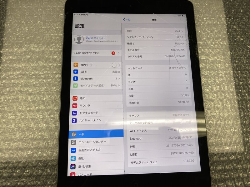 アクティベーションロック・・・OFF 画面割れ