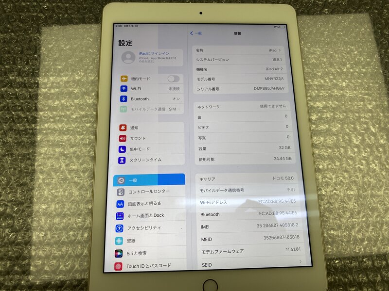 アクティベーションロック・・・OFF 表示不良
