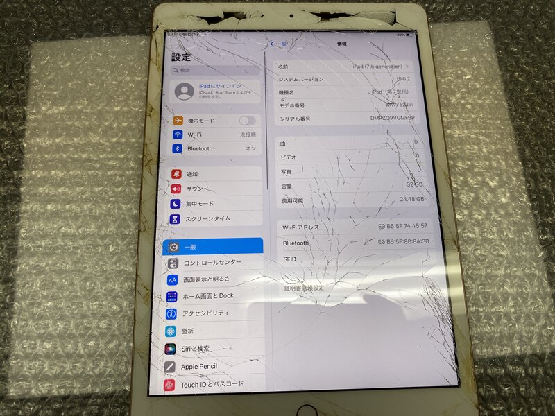 アクティベーションロック・・・OFF 画面割れ・インカメラ割れによる曇り・本体歪み