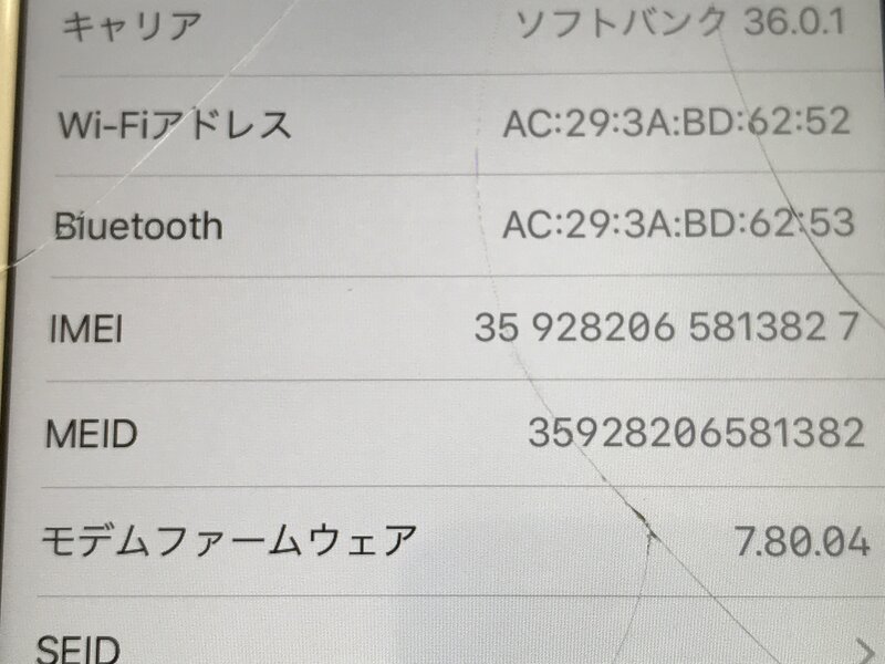アクティベーションロック解除済み 画面割れ、内カメラ割れ(映り曇り)