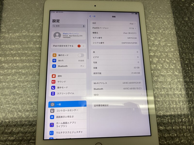 アクティベーションロック・・・OFF バッテリー劣化(バッテリー最大容量:6%)・光漏れ