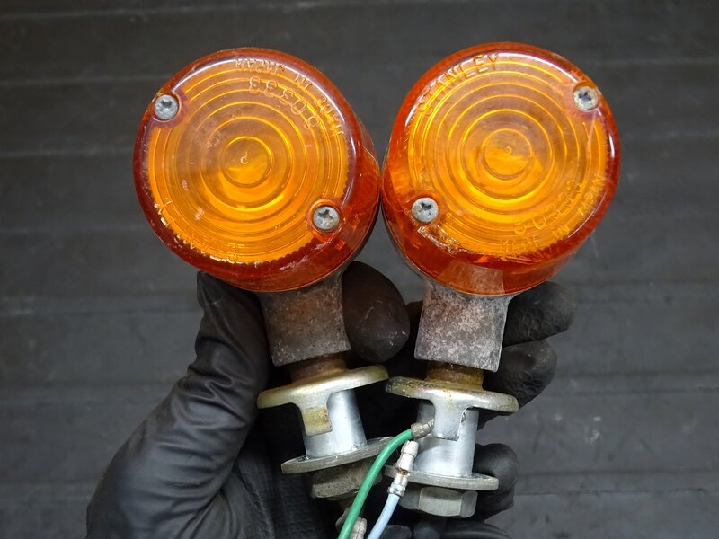 【250807】GB400TT(NC20-1011)◆ ウィンカー前後左右セット フロントウインカー リアウインカー レンズ割れ有 【検索:GB500TT