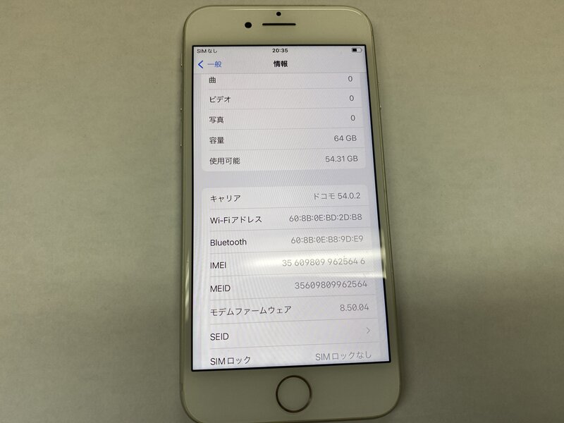 EH007 SIMフリー iPhone8 シルバー 64GB