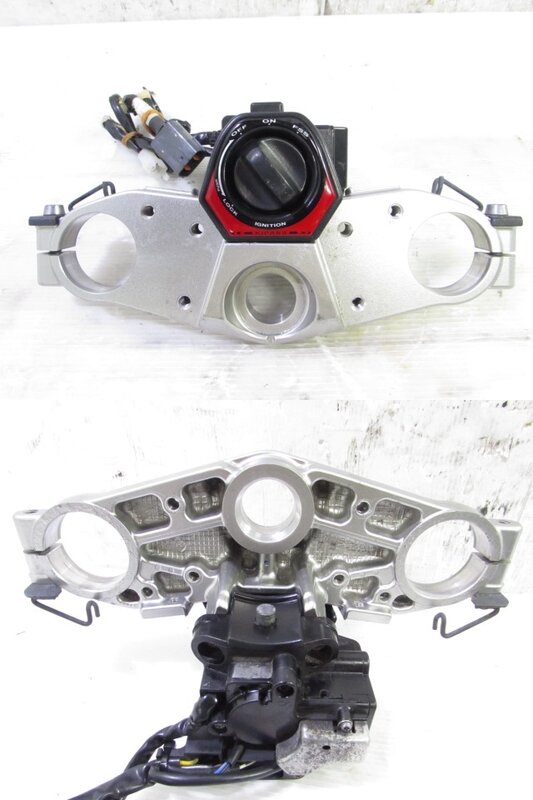 ☆フロントフォーク・・・イニシャルアジャスター付の倒立フロントフォークになります! 目視で曲がりもなく、外観特に気になるような破損は御座いません! 取り外し前に数回ボトムをさせてみましたところOIL漏れが見られました! アジャスターのプラノブに割れが御座います!