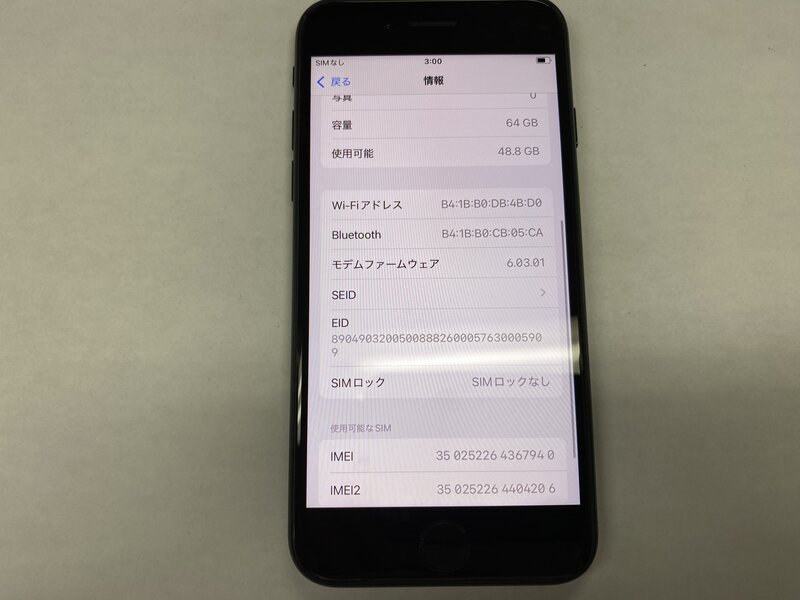 EH159 SIMフリー iPhoneSE 第2世代 ブラック 64GB