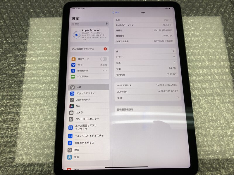 アクティベーションロック・・・OFF 画面浮き・バッテリー膨張・電源ボタン割れ・TouchID不可・液晶ムラ