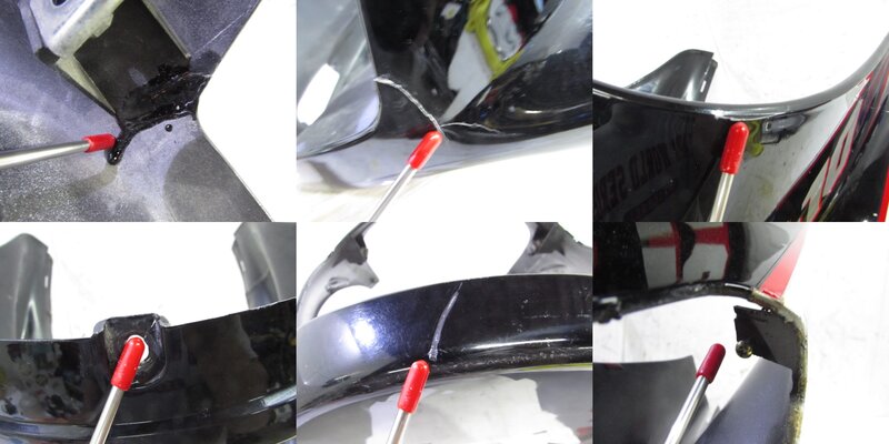 【外装】 ☆タンク・・・特に気になるような破損はなく、艶も御座います! タンク内見える範囲に少し錆が見られますので燃料フィルターのご使用、または洗浄補修後のご使用をお勧めいたします! 一部傷、軽度の凹みが御座います! ☆スクリーン・・・特に気になるような破損は御座いません! ☆アッパーカウル・・・特に大きな破損はなく、艶も御座います! 一部ひび割れや欠け、補修された箇所が御座います! ☆アッパーサイドカウル・・・左右共に特に大きな破損はなく、艶も御座います! 一部傷やひび割れ、欠けや補修箇所が御座います! ☆アンダーカウル・・・特に気になるような破損はなく、艶も御座います! 一部傷や熱溶けが御座います! ☆Fフェンダー・・・特に気になるような破損はなく、艶も御座います! 一部傷が御座います! ☆サイドカバー・・・左右共に特に大きな破損はなく、艶も御座います!左サイド 一部傷やひび割れ、欠けや補修が御座います! ☆テールカウル・・・特に気になるような破損はなく、艶も御座います! 一部軽い傷が御座います! ☆シート・・・特に気になるような破損は御座いません!