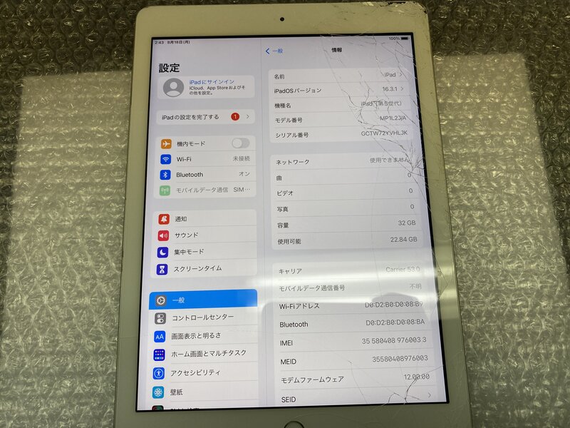 アクティベーションロック・・・OFF 画面割れ・インカメラ割れによる曇り