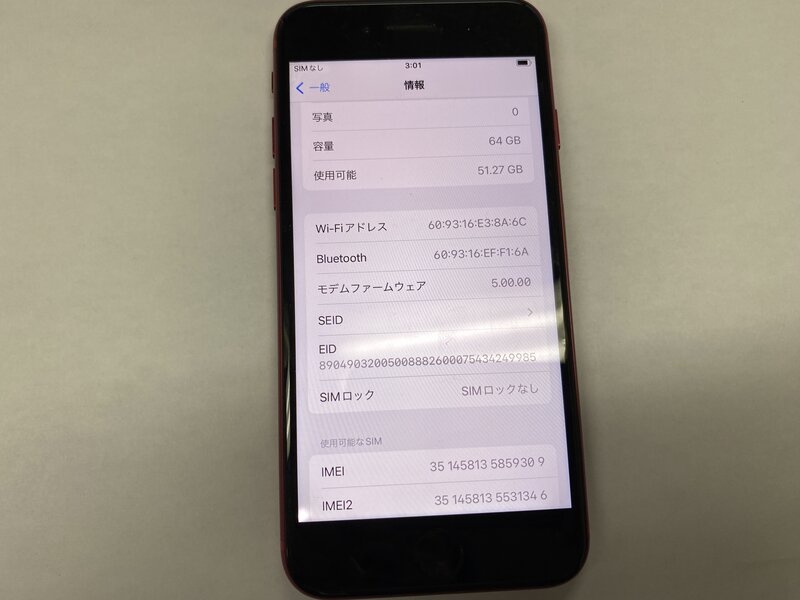 EH463 SIMフリー iPhoneSE 第2世代 レッド 64GB