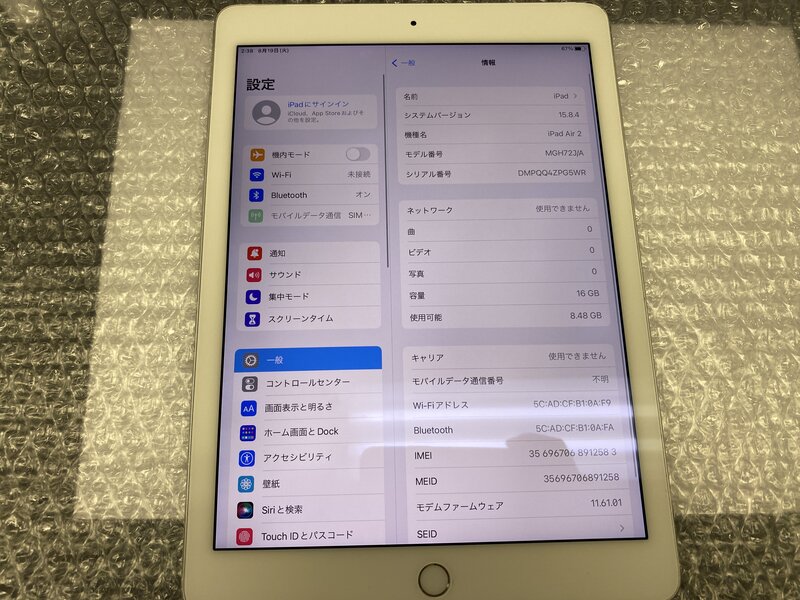 アクティベーションロック・・・OFF 画面浮き・液晶赤み・光漏れ