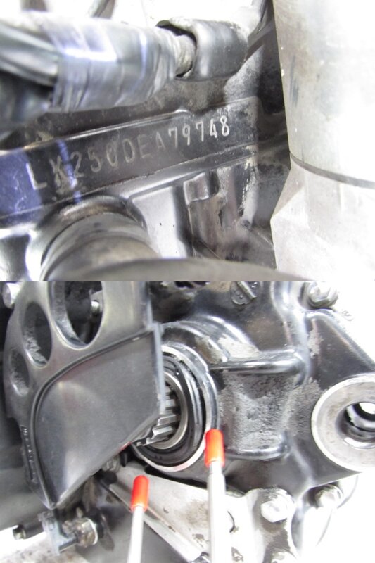 【エンジン】 ☆絶好調!! 始動性もよくアイドリングも安定し吹け上がりも抜群なエンジンとなります! ☆エンジン圧縮もシッカリとあり、まだまだ元気バリバリな実働エンジンになります! ☆動作確認の為に敷地内を試乗致しましたが、問題なく変速でき特に気になるような目立った異音等は御座いませんでした! ☆外観に関しまして特に気になるような破損は御座いません! ☆始動確認中フロントスプロケットあたりからオイルが出てきたので確認したところスプロケットを取り付けるカウンターシャフトのところのシールが破損したようでオイルが出ておりました! ご利用の際はベアリングやシールを交換してご使用ください! ☆始動確認済で圧縮もシッカリとあるこちらの実動エンジンを、是非この機会に如何でしょうか!