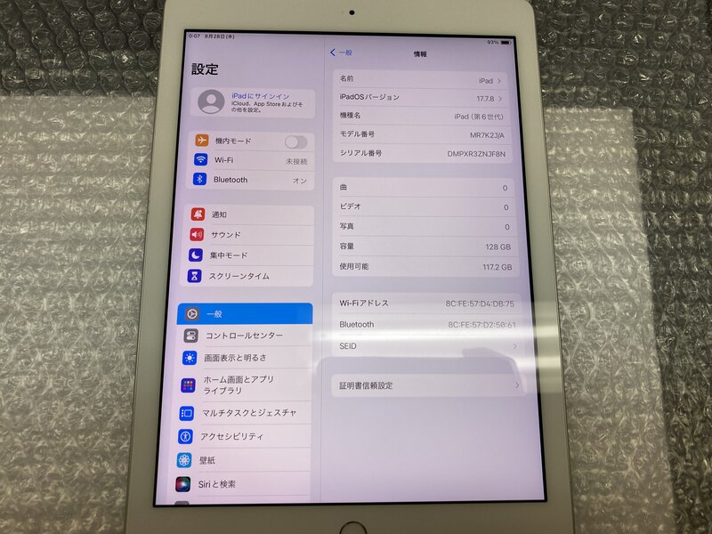 EI489 iPad 第6世代 Wi-Fiモデル A1893 シルバー 128GB